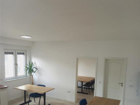 Lëshohet banesa per zyre me qera në lagjën Aktash dhe përbëhet nga një sallon, kuzhinë nje dhome , një banjo, ballkonë, koridor,Banesa është e pajisur me te gjitha elementet e nevojshme per zyre me pamje nga lindja gjithashtu posedon parking per banoret e objektit!