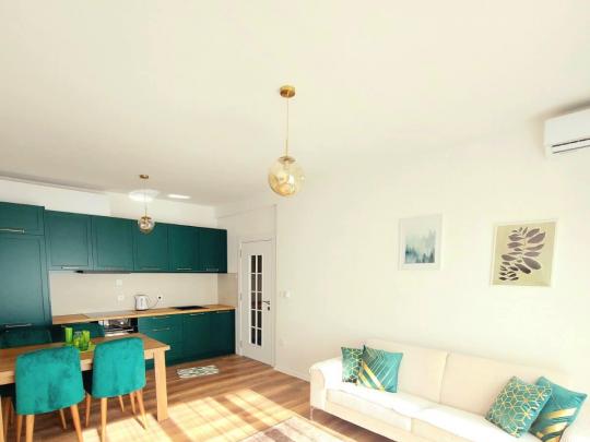 Mobilje tejet të bukura dhe të reja, kuzhinë moderne me të gjitha pajisjet funksionale, dalje direkte në rrugën e lagjes dhe kyqje të shpejtë në rrugët kryesore të kryeqytetit si Bregu i Diellit, Rruga B, Velania dhe Qendër.