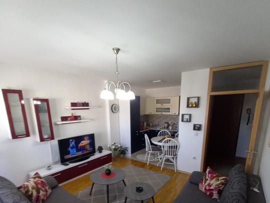 SHITET Banesë në lagjen Arberia, rruga Vicianum afer kompleksi Tregtia dhe Meridian market, eshte e mobiluar ne teresi,lift funksional ,nxemja me kallda