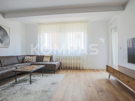Është ndërtuar me materiale shumë cilësore, fasadë termike me tulla, dritare cilësore së bashku me roleta, ashensorë, 5 banesa në katë, parking të jashtem, garazha nën objekt, rrugën B shumë afer dhe përparsi tjera. Ndër tjerash banesa është komplet e renovuar dhe mobiluar me shumë shije nga ana e pronarit dhe si e tillë ofrohet për #qira pa munguar asgje.
