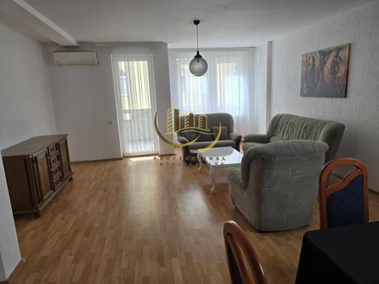 Afër Raiffeisen Bank, me 105m2, kati 2, me sistem të ngrohjes qendrore, me kushte të mira banimi është e mobiluar në tërësi si dhe ka këtë renditje: