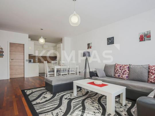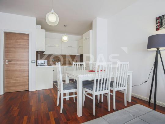 Përfshinë siperfaqe 66m² e organizuar në Sallon me Kuzhinë, Dhomë gjumi, Banjo dhe Ballkon. Banesa ndodhet në katin e 8-të.