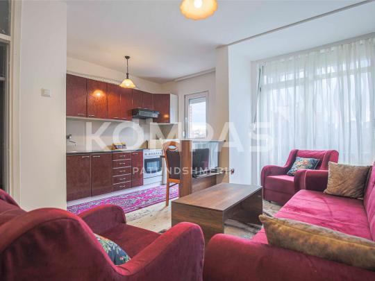 Përfshinë siperfaqe neto 50m², e organizuar në Qëndrim ditorë së bashku me kuzhinë, dhomë gjumi, banjo dhe ballkon.