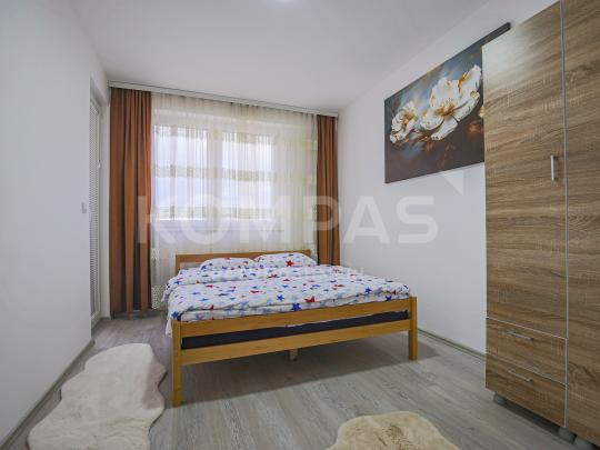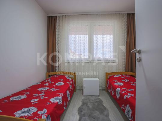 Zona përreth është mjaft e qetë dhe pranë shumë shërbimëve të ndryshme që bëjnë të mundur një jetesë sa më komode. Qasje të lehtë në rrugën kryesore, çerdhe shumë afër, shkollë fillore, pamje të hapur mes banesave, 2 ashensorë në hyrje dhe shumë përparësi tjera. Po ashtu vlenë të ceket se banesa është komplet e re.
