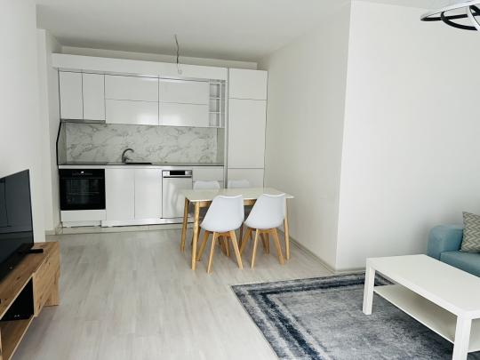 Banesa është e mobiluar në tërësi me te gjitha elementet funksionale dhe ka këtë renditje të hapësirave të brendshme; qëndrim ditor, kuzhinë, dy dhomë gjumi, një banjo, depo,korridor, ballkon dhe garazhe.