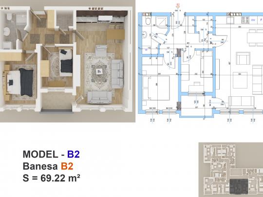 Banesa eshte ne katin e 5te (69m2) dhe ka kete renditje: