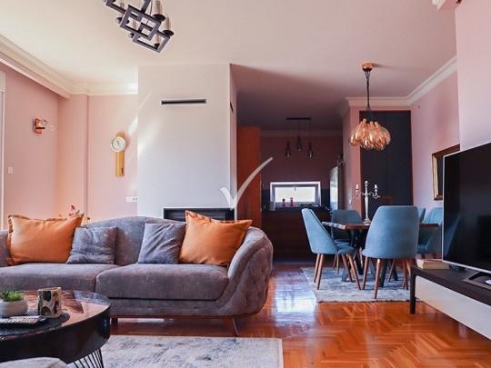 Ofrohet për Qira Banesë 2+1 në lagjen Kalabria (Emshir), gjendet ne Kompleksin Nartel, ka nje sipërfaqe prej 156m² banim dhe 50m² terasë. Banesa është e mobiluar tersisht me mobiljet me moderne dhe elegante, sistemin e ngrohjes e ka me energji elektrike.