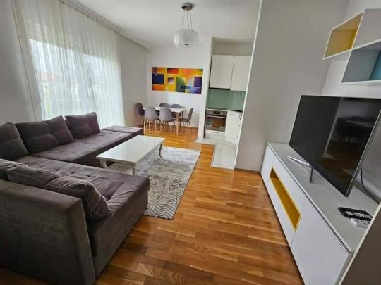 Komplet e mobiluar, ka lift parking ekstra per banor, objekti ka pishine.