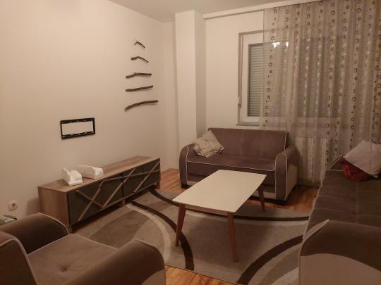 Banesa gjendet ne katin e 5-te, eshte super e mobiluar dhe i ka te gjitha kushtet per banim, gjithesej ka 56m² ku perbehet prej :