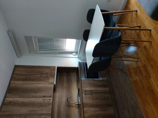 Banesa eshte super e mobiluar dhe ka te gjitha kushtet per banim, gjithesej ka 60m² ku perbehet prej :