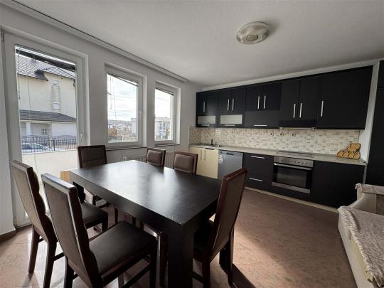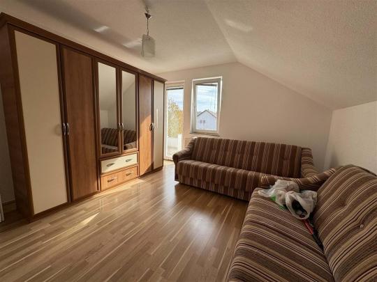 Shtepia eshte 3 kateshe, podrumi me garazhe dhe dy kate banim. Kati i pare posedon sallon me kuzhine dhe banjo, si dhe kati i dyte i ka tri dhoma gjumi, ballkon dhe banjo. Posedon nxemje qendrore me dru.Eshte e mobiluar ne teresi dhe e gatshme per banim.