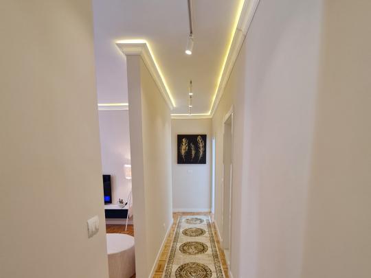 Banesa është dizajnuar dhe mobiluar me një stil të veqant dhe modern në të gjithë ambientin që përfshinë 190m2 prej tyre 90 banim të shpërndara në;