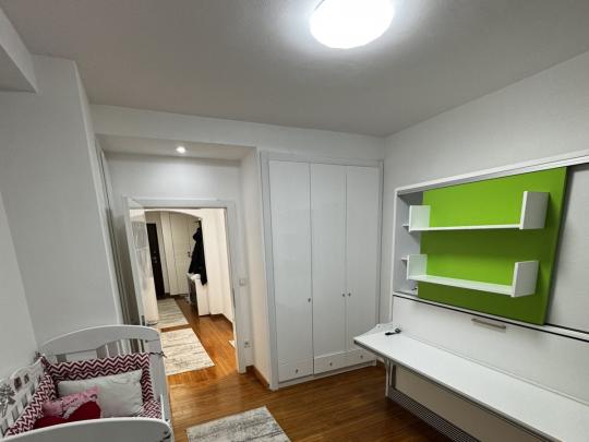 Banesa gjindet në katin e shtate, dhe ndërtesa ku ndodhet banesa është e pajisur me ashensor.Vend parkimi ne garazhe jepet si mundesi, kushton 50 Euro shtese ne muaj.