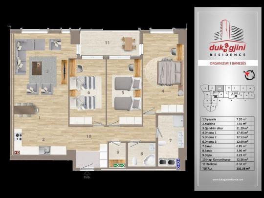 Ofrohet me Qera, banesa moderne 131.38 m2 per Banim apo Afarizem-Zyre.