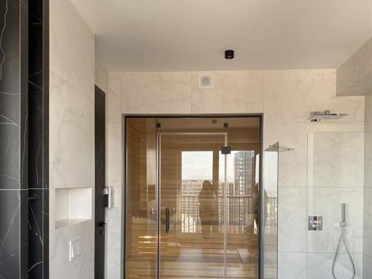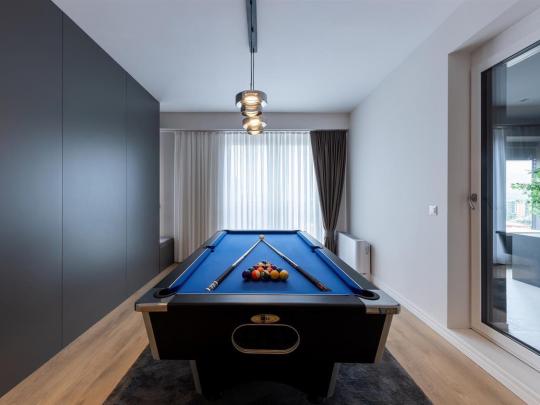 Kati i dytë: Dhomën e fjetjes, garderobe, tavoline pune, banjo, saunë, jacuzzi dhe tavolinë të bilardos.