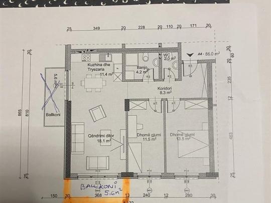 Banesa 86m2 ne shitje te "Mati 1" konkretisht ne rrugen "Isa Kastrati" saktesisht ne kompleksin "Erta - Baruti Group". Banesa lokalizohet ne katin e pare dhe ka kete formacion: