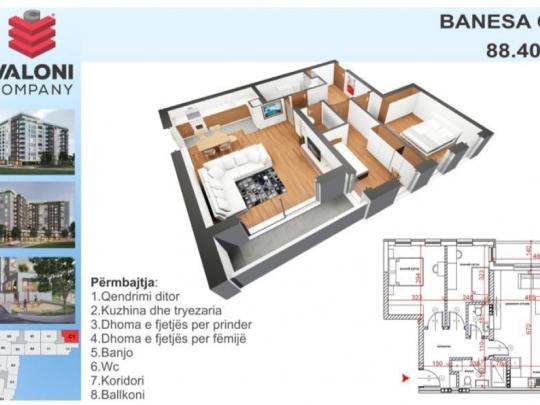 Banesë ne shitje në lagjen Mati 1,afer rruges qe lidhet me rrugen B edhe C.Eshte ndertim i ri dhe leshohet per perdorim ne muajin Qershor 2022.