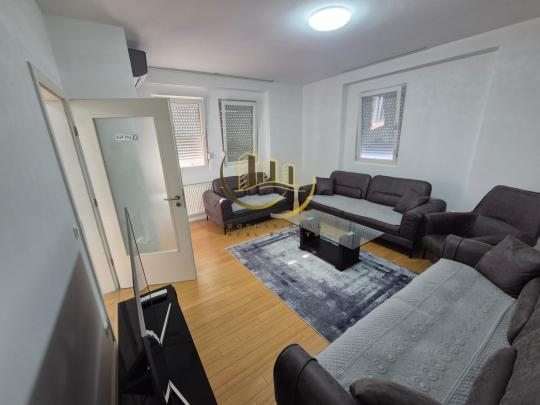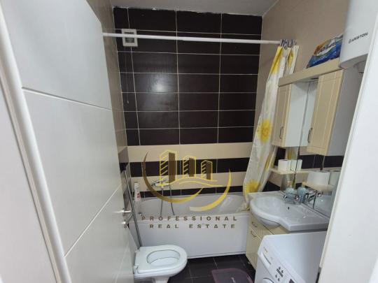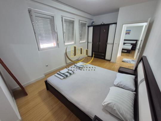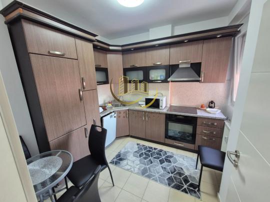 Afër rruges B, me 105m2, kati 8 me lift, me sistem të ngrohjes qendrore, me kushte shumë të mira banimi, është e mobiluar si dhe ka këtë renditje: