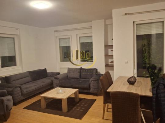 Në fillimin e rrugës Muharrem Fejza, me 97 m2, kati 2 me lift, me sistem të ngrohjes qendrore me termokos, me kushte shumë të mira banimi është e mobiluar në tërësi, si dhe ka këtë renditje: