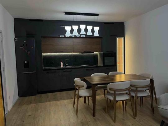 Banesa është e e re, e pabanuar me pare, e mobiluar në tërësi me te gjitha elementet funksionale dhe ka këtë renditje të hapësirave të brendshme;sallon me kuzhinë, dy dhoma gjumi, dy banjo, korridor dhe një ballkon dhe garazhe per veture.Nxemjet qendrore jane nen dysheme, posedon edhe klima.