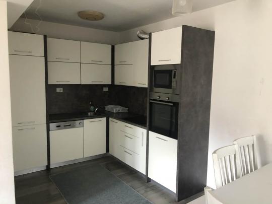 Banesa është e mobiluar në tërësi me te gjitha elementet funksionale dhe ka këtë renditje të hapësirave të brendshme; qëndrim ditor me kuzhinë, dy dhoma gjumi, një banjo, korridor dhe një ballkon.