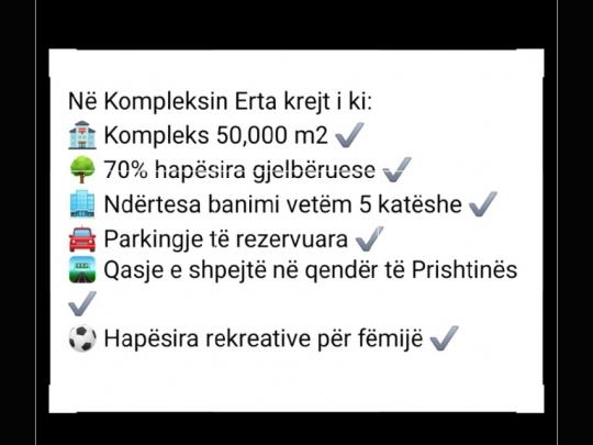 Kati1/sip.81m² pozicionohet në Jug-Lindje, në rrugen 'Isa Kastrati' objekti ERTA, ndërtuar nga Baruti Group, me leje ndërtimi, ësht afër finalizimit.