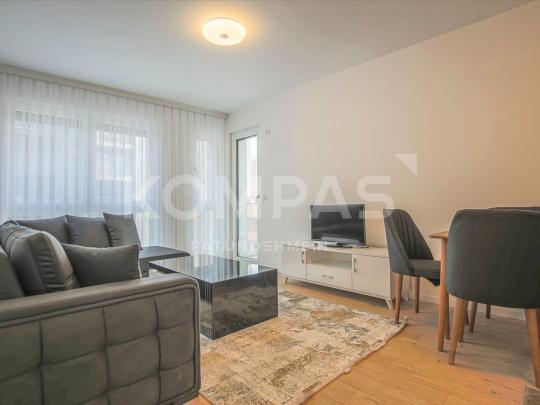 Ka sipërfaqe prej 57m² dhe përbëhet nga 1 Dhomë dite me kuzhinë, dhomë gjumi, Banjo dhe Ballkon.