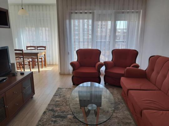 Banesa është e mobiluar në tërësi me te gjitha elementet funksionale dhe ka këtë renditje të hapësirave të brendshme; qëndrim ditor, kuzhinë, dy dhoma gjumi, një banjo, depo dhe një ballkon.