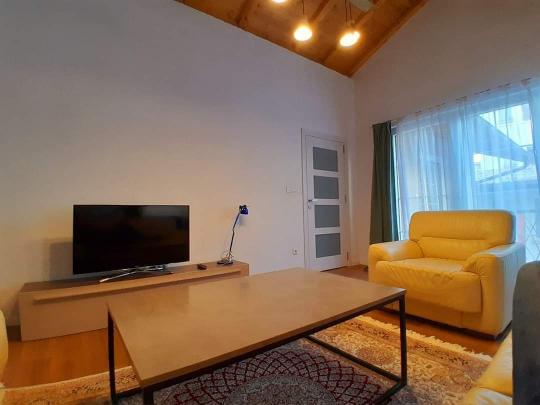 Është e mobiluar në tërësi, moderne dhe e renditur kësisoji: qëndrimin ditor, kuzhinën, dy dhoma të gjumit, dy banjo dhe tualet dhe një ballkon.