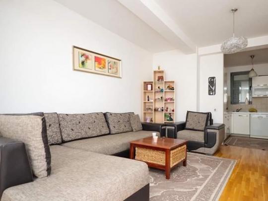 SHITET banesa në Qendër, mbrapa Teatrit. Banesa është e mobiluar në tërësi dhe e përshtatshme për banim.