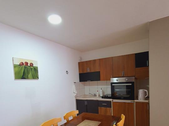 Banesa perbehet nga salloni me kuzhine, dhome gjumi , shpajz, ballkon dhe gjindet ne katin e 4 ,(me lift).