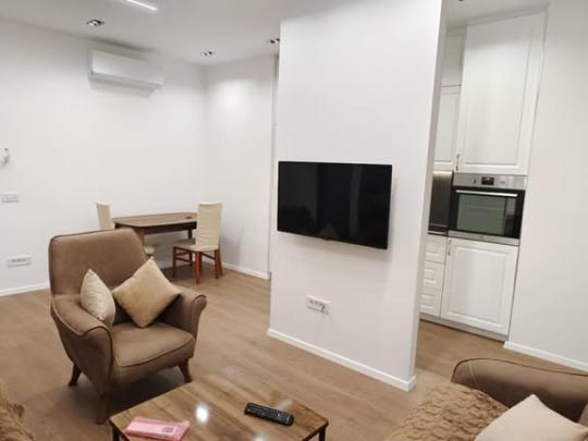 Ofrohet për qira Banesë 1+1 në Qendër, banesa gjendet afër Shkollës “Elena Gjika”, ka një sipërfaqe prej 60m2 dhe ndodhet në katin e parë, sistemin e ngrohjes e ka me energji elektrike, me kushte shumë të mira banimi, e mobiluar komplet dhe e gatshme për banim.