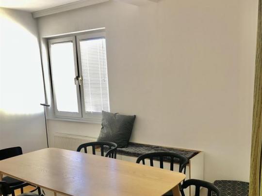 Banesë me qira te 4 Llullat te embeltorja Boston, ka nxemje qendrore, eshte e mobiluar ne teresi per zyre