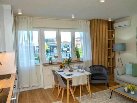 Banesa ka nje organizim te veçante dhe mobilim komod te pershtatshem jetese ne te gjitha mjetet e domosdoshme percjellese. Ka klimatizim, hyrje me qasje te veçante qip ne hyrje te objektit, parking te destinuar per banoret e objektit. Leshohet per afat te gjate per nderkombetar depozita e obligueshme