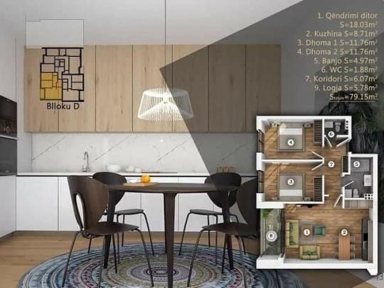 Banesa ndodhet në katin e 7-të në kuader të këti blloku, posedon 79.15m²,