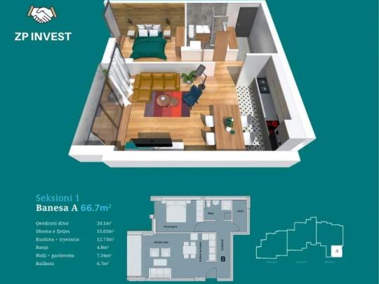 Banesa 66.6m2 dhe eshte e gatshme per banim