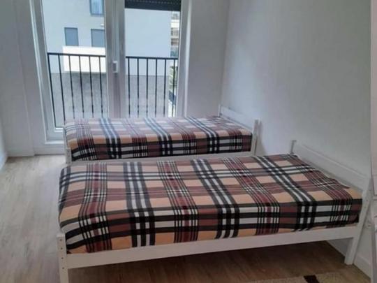 Renditja: sallon-kuzhinë, dy dhoma gjumi, dy banjo dhe ballkon.