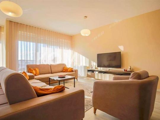 Banesa ka sallon me kuzhin , 2 dhoma fjetes , 2 banjo , eshte e mobiluar extra , pamje ka perendimi , pamja eshte nga rruga B ( se pengon askush ) ne nje kat gjenden vetem 3 banesa ( pak banor ) lifti panoram , parking nentokesor etj .