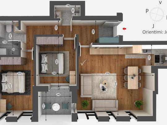 Renditja: Sallon me kuzhine | 2 Dhome gjumi | Banjo | Ballkon | Depo |Garazhd |