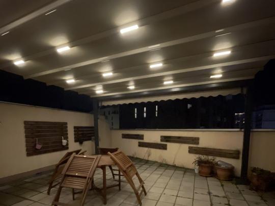 Dhe ka këtë renditje të hapësirave të brendshme; qëndrim ditor, kuzhinë me tryezari nje dhome gjumi, nje banjo, ballkonë me dalje nga salloni dhe terrace 40 m² me dalje nga dhoma e gjumit.