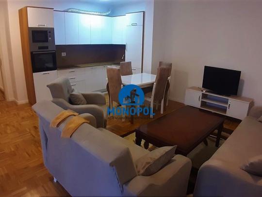 në rrugen "Muharrem Fejza", afër Tregut Ditor, me 85m2, kati 4-të me lift, sistem te ngrohjes me rryme, me kushte shumë të mira banimi është e mobiluar në tërësi si dhe ka këtë renditje: