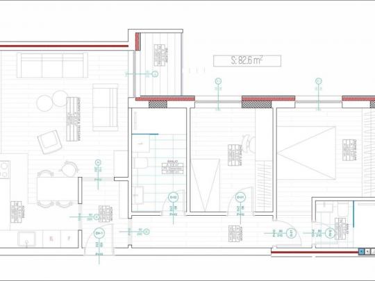 Banesa është e mobiluar në tërësi me te gjitha elementet funksionale dhe ka këtë renditje të hapësirave të brendshme; qëndrim ditor, kuzhinë, dy dhoma gjumi, dy banjo, korridor dhe një ballkon.