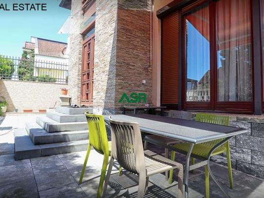 E mobiluar komplet me te gjitha elemtet funksionale , 4 dhoma gjumi, 2 banjo, 1 ballkon, Garazh, 3000 litra rezervuar të ujit me hidrofor (në rast te mungesës së ujit – edhe pse nuk ka fare ndërprerje), Kamera, Alarm, Sistem të ujitjes, Nxemje qendrore.